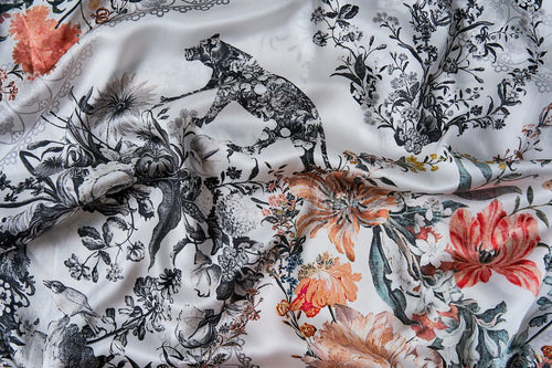 The De Haar Memoirs Mini Shirt Dress With Feathers moves through a tapestry of delicate florals and intricate tilework pattern. Immerse yourself in the luxurious embrace of silk with this captivating shirt dress. Crafted to
