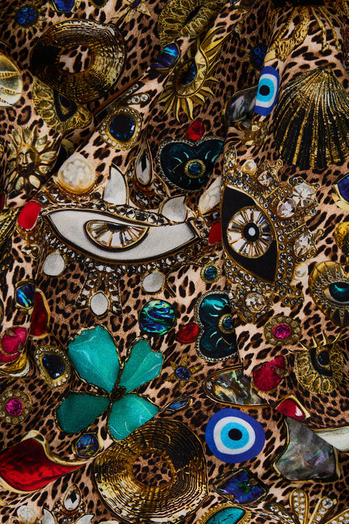 Taking 84 hours to complete, this halterneck mini dress is a true celebration of craftsmanship and creativity. Unique heart and eye motifs are meticulously hand-embroidered by our skilled artisans, brought to life through lustrous crystals,